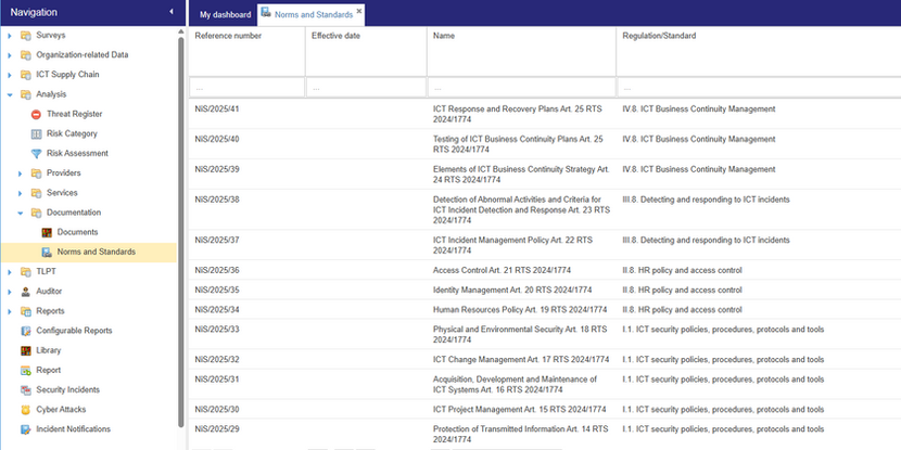 DORA's artifact mapping feature allows for clear presentation of links between processes, data and documentation, enabling easy tracking of dependencies, identifying potential gaps and ensuring consistency in the implementation of regulatory requirements. Organizations thus gain comprehensive insight into potential risks and full control over IT assets